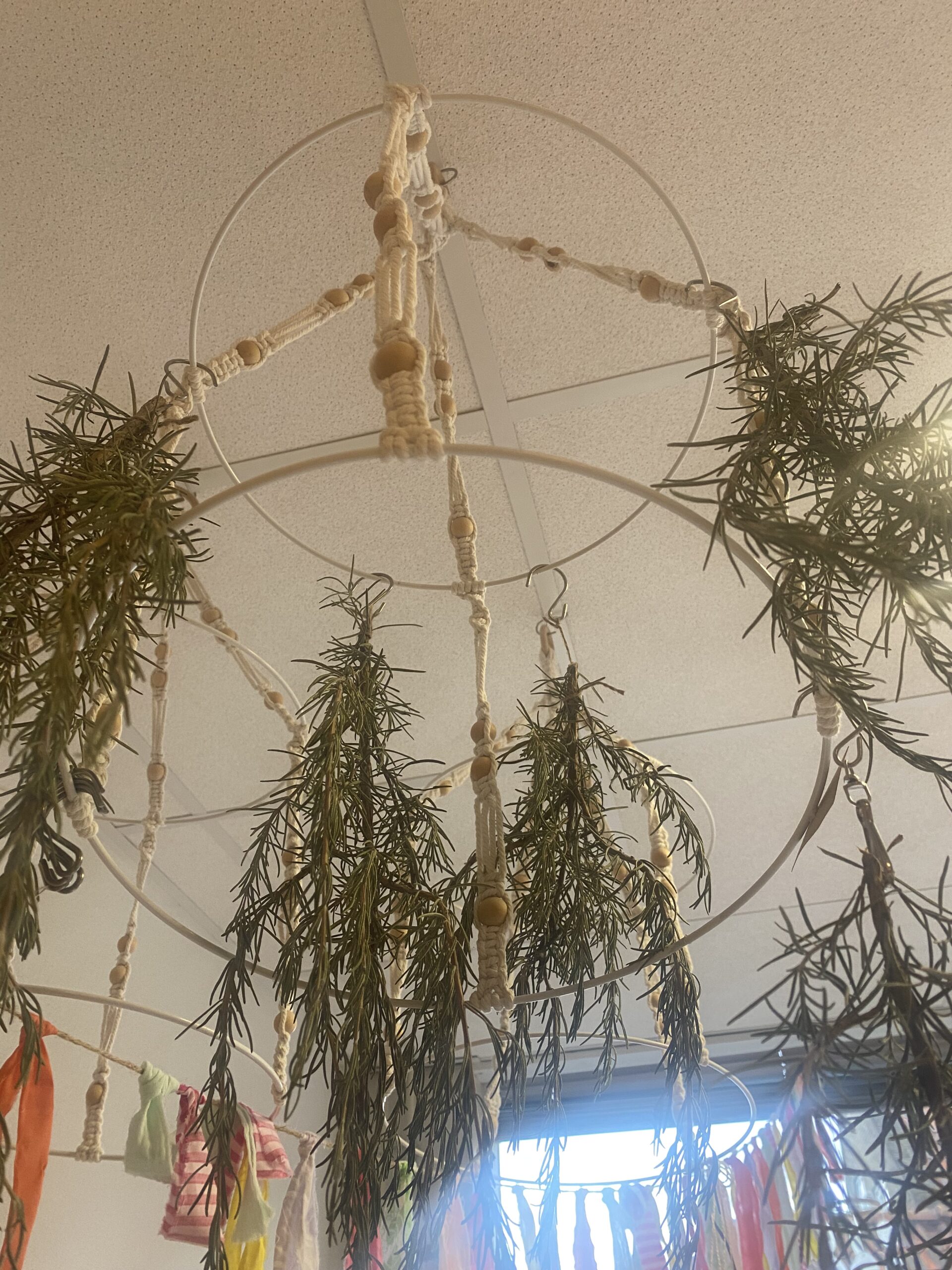 Droog je kruiden op een natuurlijke en decoratieve manier met ons Kruiden Droogrek van Macramé. Dit handgemaakte rek is perfect om kruiden, bloemen of kleine plantjes op te hangen en laat ze rustig drogen terwijl ze een sfeervol en bohemian accent aan je interieur geven.