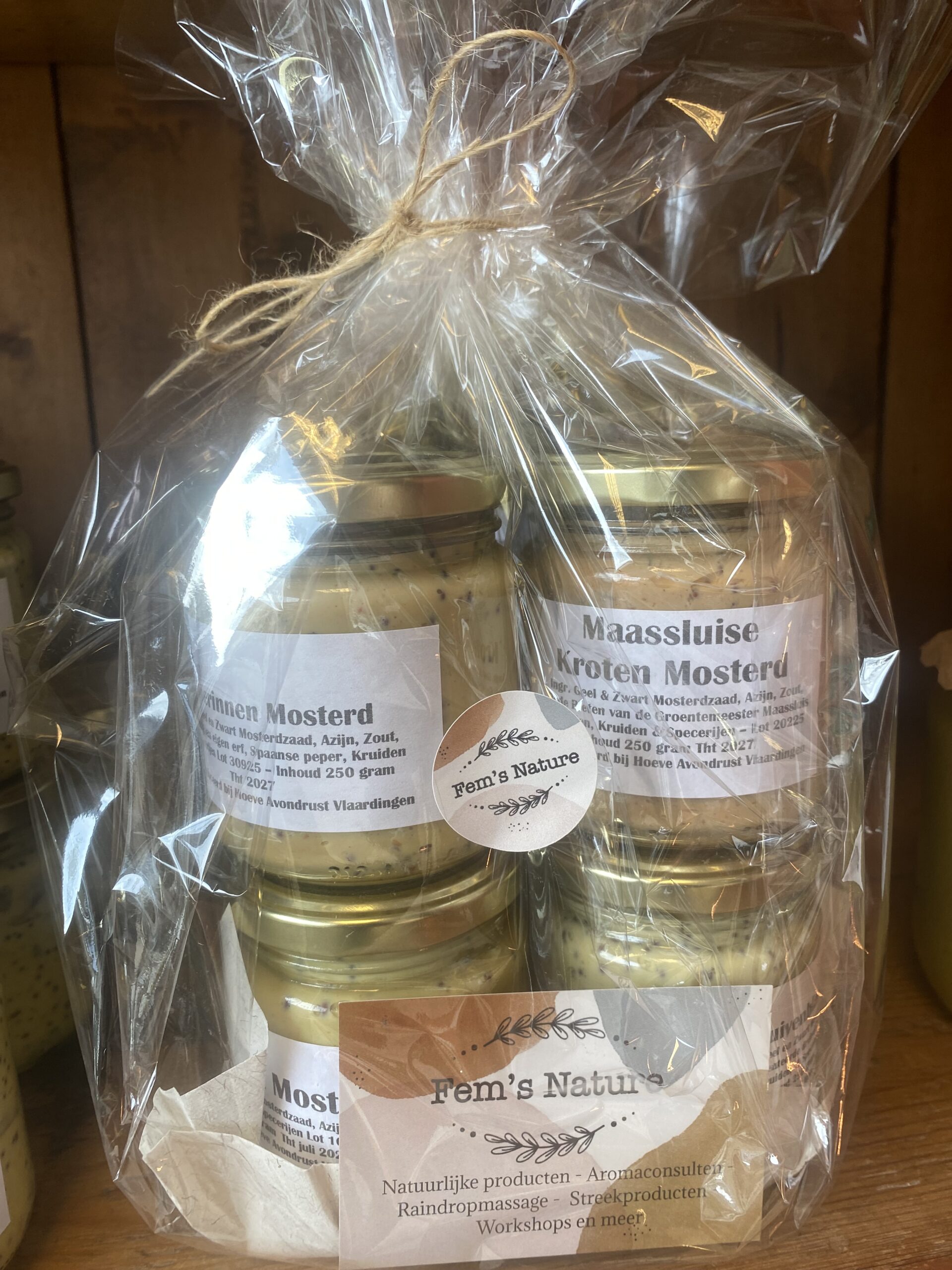 Ontdek de authentieke smaken van lokale streekproducten met dit zorgvuldig samengestelde mosterdpakket. Het pakket bevat vier bijzondere soorten mosterd en mayonaise, zoals boerenmosterd, daslookmayonaise, Maassluise krotenmosterd of druivenbladmosterd. De exacte samenstelling varieert afhankelijk van het seizoen en de beschikbaarheid van de producten, zodat je telkens iets unieks ontvangt.